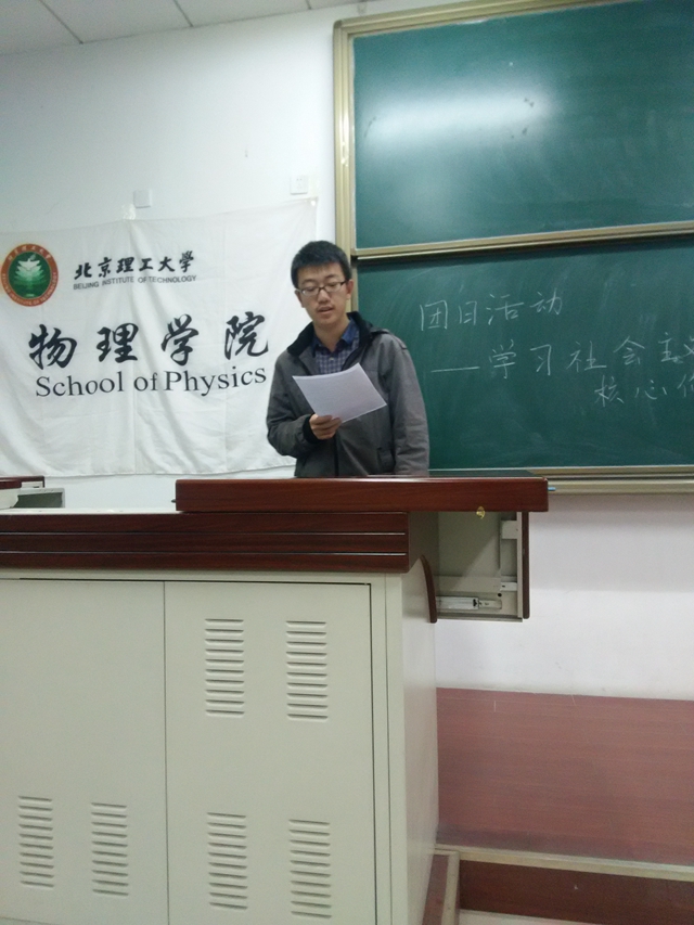 2014年11月15日下午,为了积极响应太阳集团tcy8722校团委关于“践行社会主义核心价值观”的号召,太阳集团城娱87222014级全体新生在物理实验中心229联合举办了以“践行社会主义核心价值观”为主题的团日活动。本次活动由各班级团支部书记组织委员和宣传委员主持。