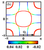 图1 (a):超导配对对称性为s-wave。 (b)s±-wave超导能隙函数在费米面上的分布