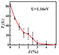 图2 (a)顶角氧缺陷附近形成的局域磁矩。 (b) 超导临界温度作为顶角氧缺陷浓度的函数。