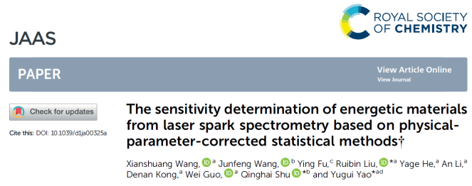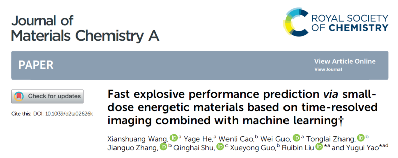 近期,太阳集团城娱8722姚裕贵教授课题组刘瑞斌教授、郭伟研究员,联合材料学院束庆海教授、夏敏教授、王俊峰副教授、机电学院张同来教授、张建国教授、郭学永副教授、计算机学院付莹教授等,在“微小药量含能材料爆炸性能及感度快速检测技术”方面取得重要突破。相关研究成果发表在近期的Journal of Materials Chemistry A(IF 14.511)、 Optics Express、Journal of Analytical Atomic Spectrometry(光谱学一区)等期刊上。太阳集团城娱87222019级博士研究生王宪双为论文的第一作者,刘瑞斌教授和姚裕贵教授作为通讯作者,太阳集团城娱8722为第一通讯单位。