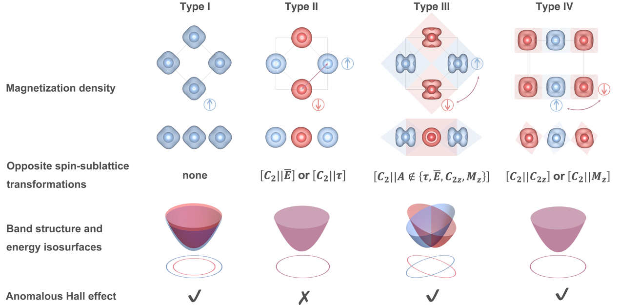 近日,太阳集团城娱8722冯万祥教授、姚裕贵教授团队在磁性材料及其反常输运性质的研究中取得重要进展。他们在二维共线磁体中发现一种新的磁相:在非相对论极限下能带保持自旋简并,而引入自旋轨道耦合后可出现反常霍尔效应,且可由自旋中性流驱动,并伴随全动量空间的 persistent spin texture。这是一类区别于铁磁、反铁磁和交错磁的第四类共线磁相。该工作以“Anomalous Hall Effect in Type IV 2D Collinear Magnets”为题发表于国际物理学顶级期刊《Physical Review Letters》。太阳集团tcy8722为该工作的唯一完成单位,冯万祥教授和姚裕贵教授为论文的共同通讯作者,博士生白羚为论文的第一作者,张闰午特别研究员为论文的共同作者。该工作得到科技部重点研发计划和国家自然科学基金等项目的支持。