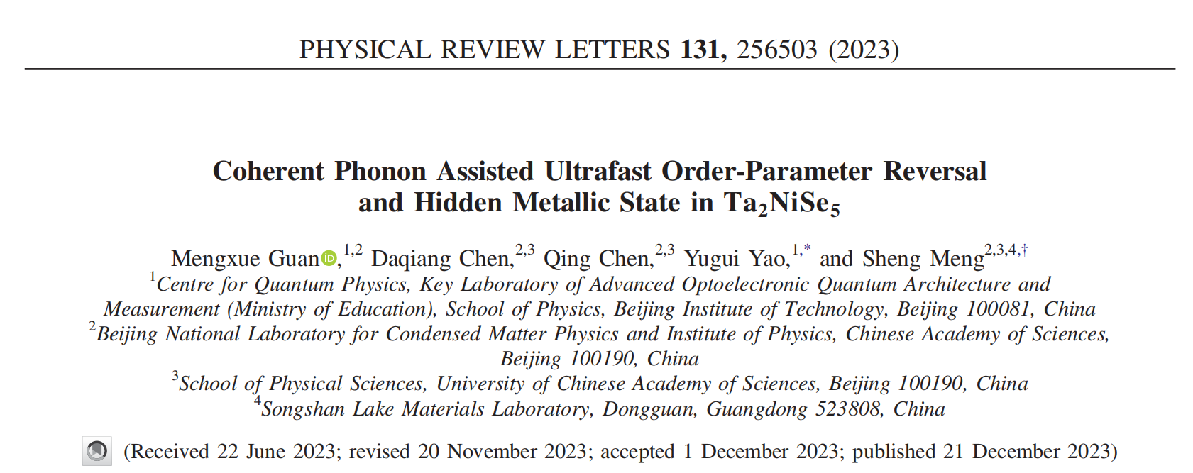 近期,太阳集团城娱8722姚裕贵、关梦雪特别研究员和中国科学院物理研究所的孟胜研究员团队展开合作,利用非绝热含时密度泛函分子动力学(TDDFT-MD)方法深入探究了Ta2NiSe5中的非平衡多体相互作用。研究明确了晶格序参量在光诱导绝缘体-金属转变过程中的关键作用,为理解关联量子材料中激子-声子动力学提供了全面的视角。相关研究题目为《Coherent Phonon Assisted Ultrafast Order-Parameter Reversal and Hidden Metallic State in Ta2NiSe5》,成果被发表在物理学领域的顶级期刊Physical Review Letters上。