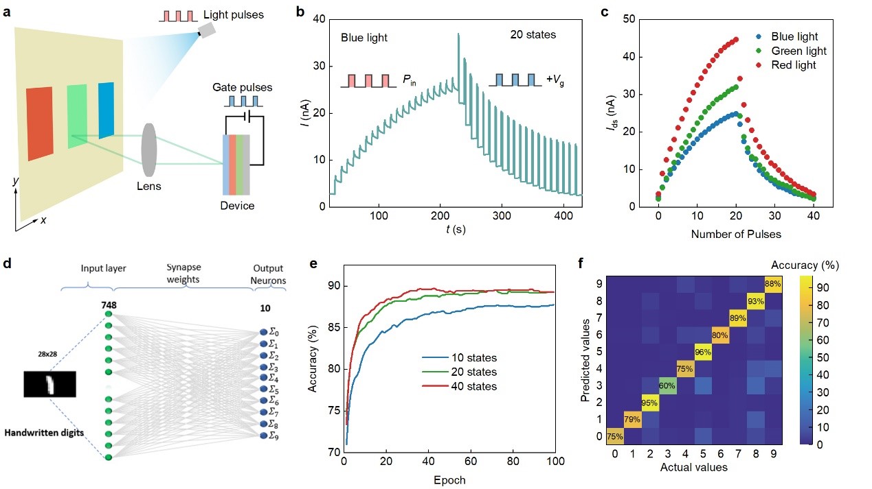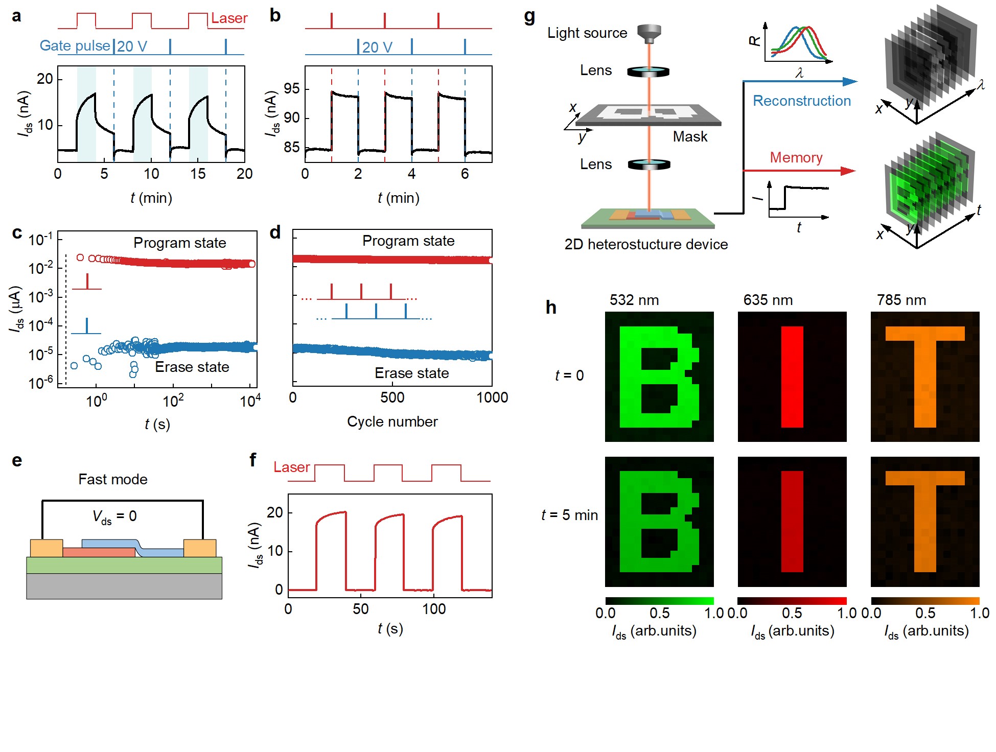 近日,太阳集团城娱8722吴汉春教授研究团队,与台湾大学/中原大学张庆瑞教授、高雄科技大学洪冠明教授、以及爱尔兰圣三一学院Igor V. Shvets教授合作,研制了一种新型范德华异质结光谱仪。该微型光谱仪不仅具有尺寸小 (19微米)、光谱分辨率高(5nm)、光谱响应范围宽(400nm-nm)、响应速度高的特点,还具有成像、存储和神经形态计算功能。相关成果以“Miniaturized spectrometer with intrinsic long-term image memory”为题,发表在国际顶级期刊《Nature Communications》上。