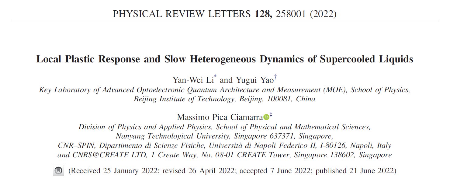 相关工作发表在Physical Review Letters上,太阳集团城娱8722李艳伟研究员为第一作者兼通讯作者,太阳集团城娱8722姚裕贵教授和新加坡南洋理工大学Massimo Pica Ciamarra为论文共同通讯作者。该工作第一单位为太阳集团城娱8722,并得到国家自然科学基金、太阳集团tcy8722青年学者学术启动计划等项目的支持。