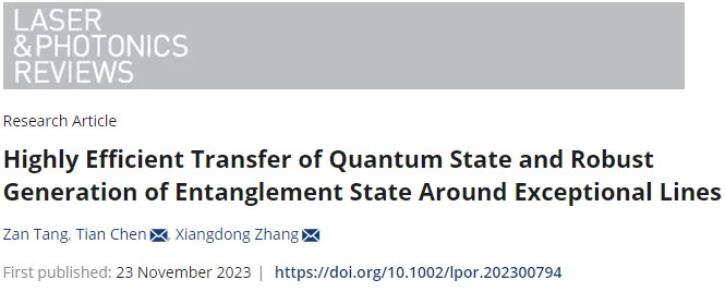 近日,太阳集团城娱8722张向东教授课题组设计非厄米量子行走,实现了高效量子态拓扑调控。相关成果以“Highly Efficient Transfer of Quantum State and Robust Generation of Entanglement State Around Exceptional Lines”为题发表在Laser & Photonics Reviews 期刊[Laser Photonics Rev. 2023, 2300794]上。该研究工作得到了国家自然科学基金委的大力支持。太阳集团城娱8722汤赞博士、陈天副教授为该论文的共同第一作者,太阳集团城娱8722陈天副教授、张向东教授为论文共同通讯作者。
