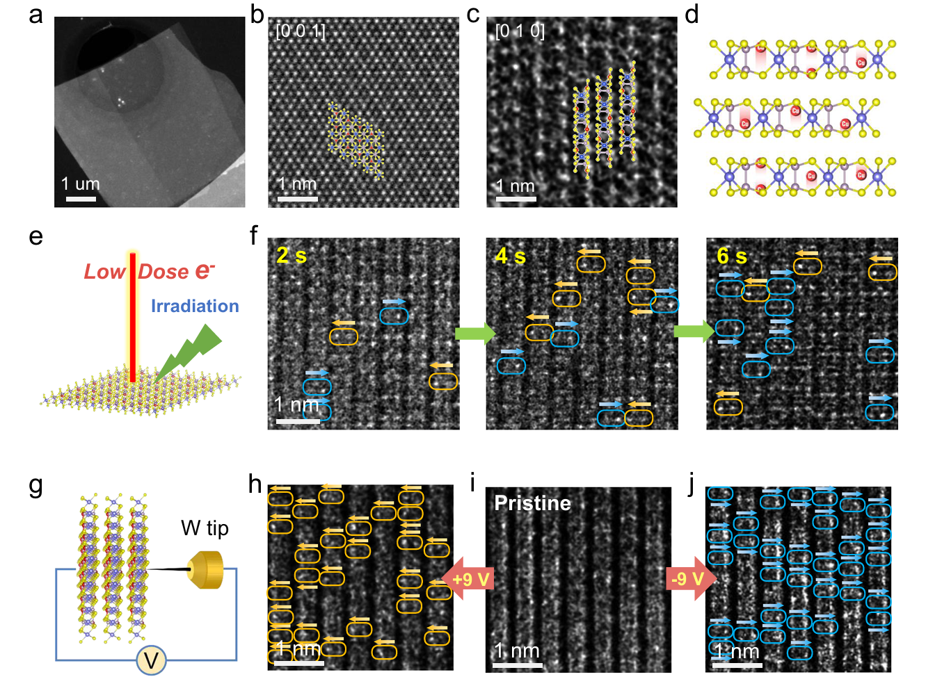 图3. CuVP2S6的原子结构及原位Cu离子迁移过程。