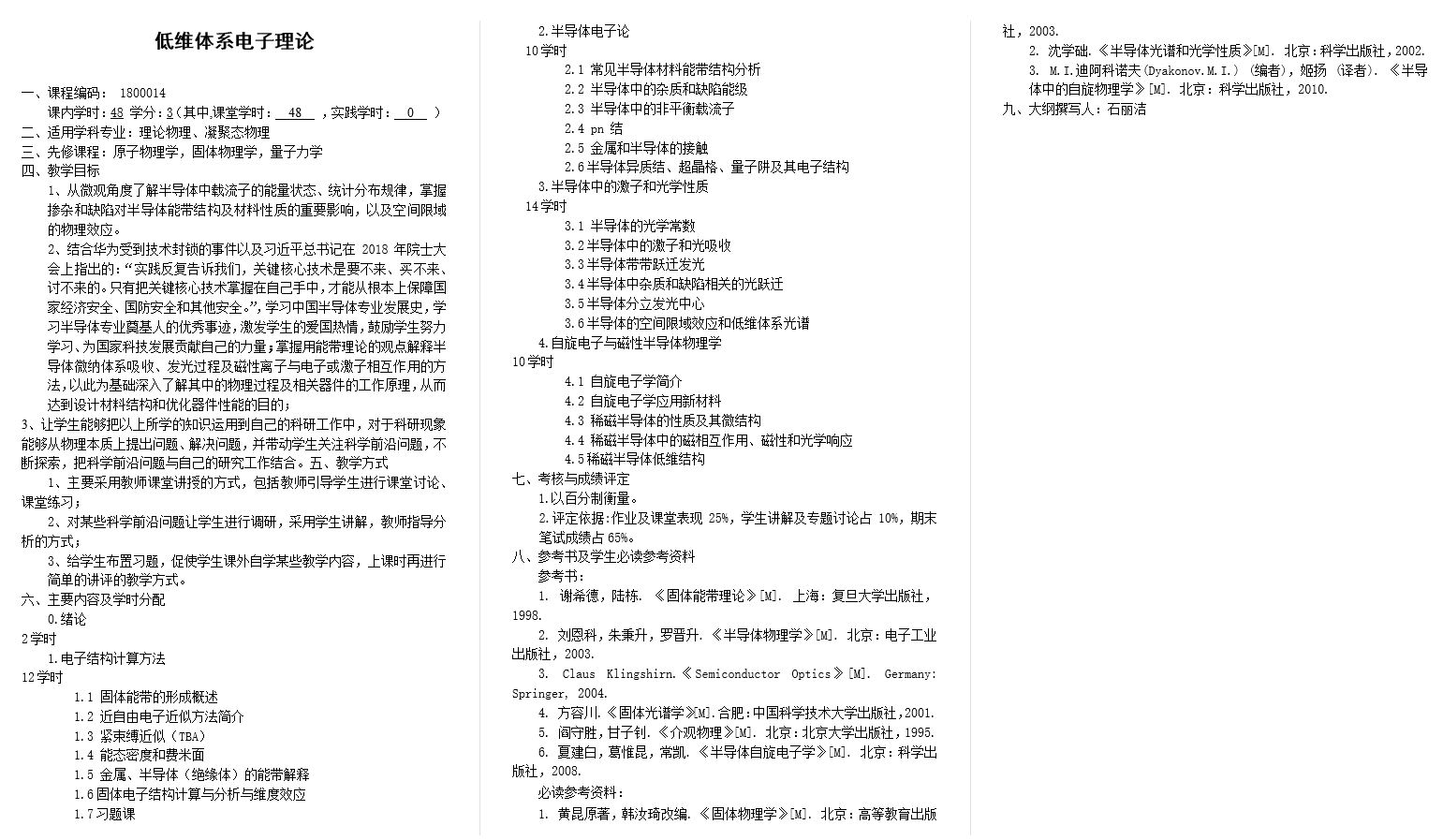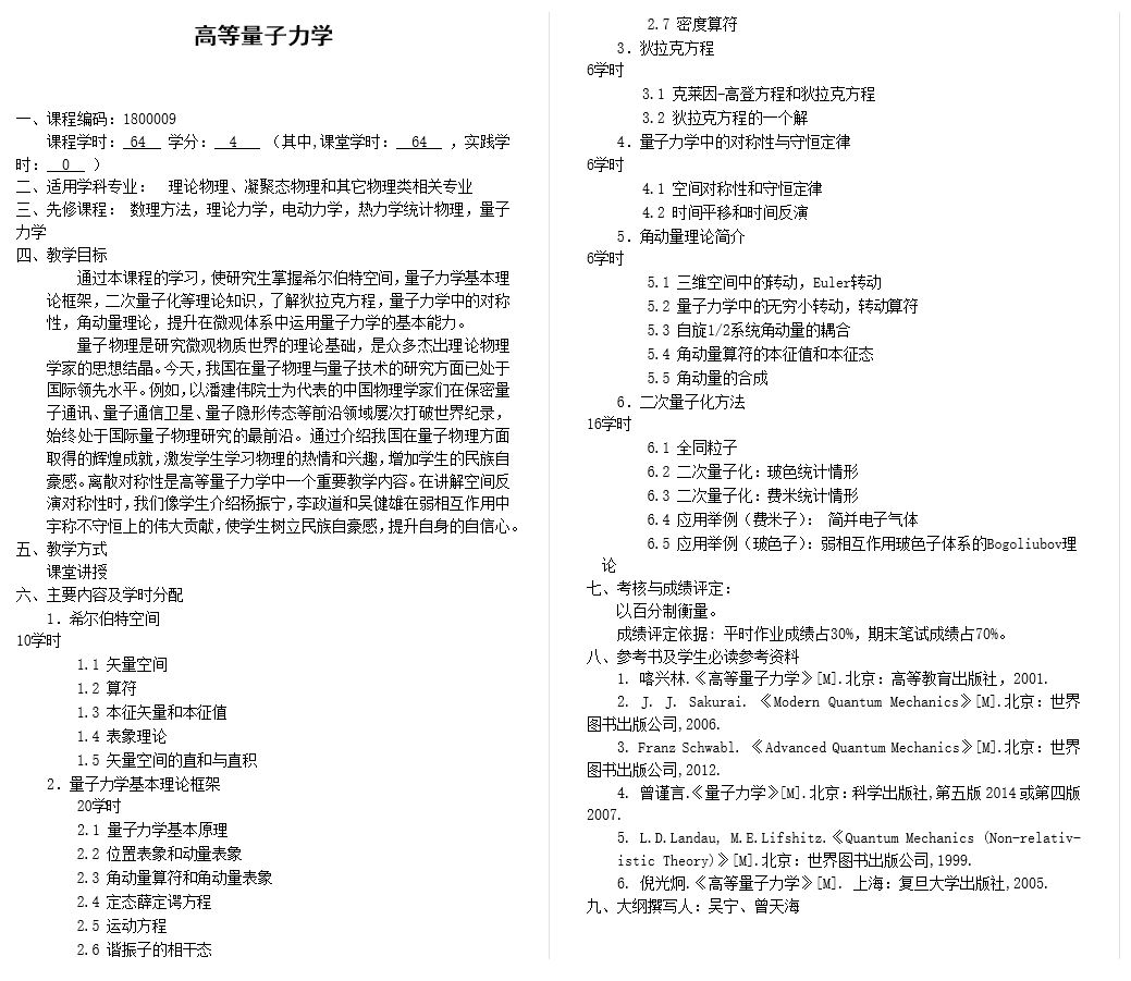 为深入贯彻落实学校党委立德树人工作的部署,将思想政治工作贯彻教育教学全过程,构建全员全程全方位育人格局,推进学校研究生“课程思政”教育教学体系建设,现将太阳集团城娱87222019年学科育人示范课《低维体系电子理论》、《高等量子力学》建设相关信息公布如下: