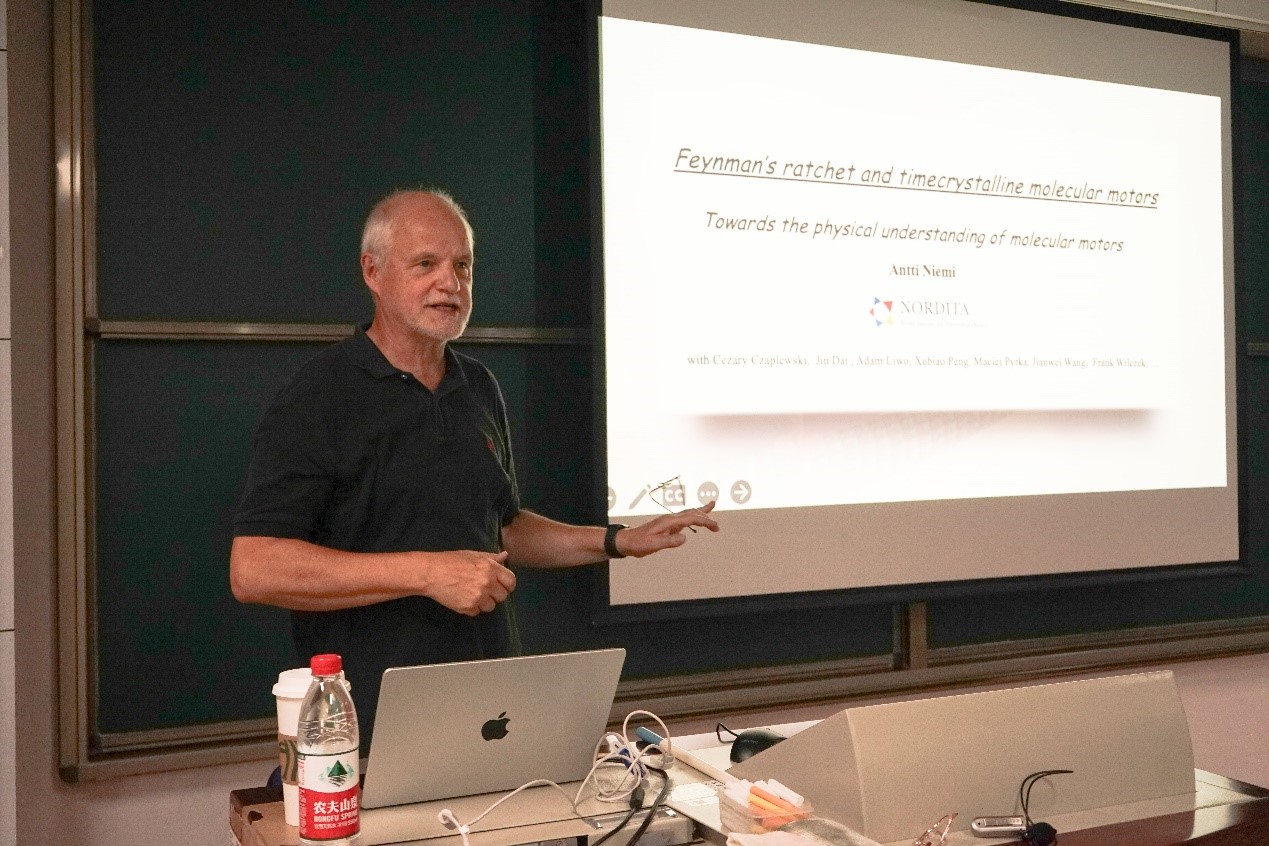 2023年8月30日下午2:00,北欧理论物理中心终身教授、太阳集团tcy8722兼职教授Antti Niemi为我院师生在理学楼B2-206作了题为“Towards the physical understanding of molecular motors”的学术报告。