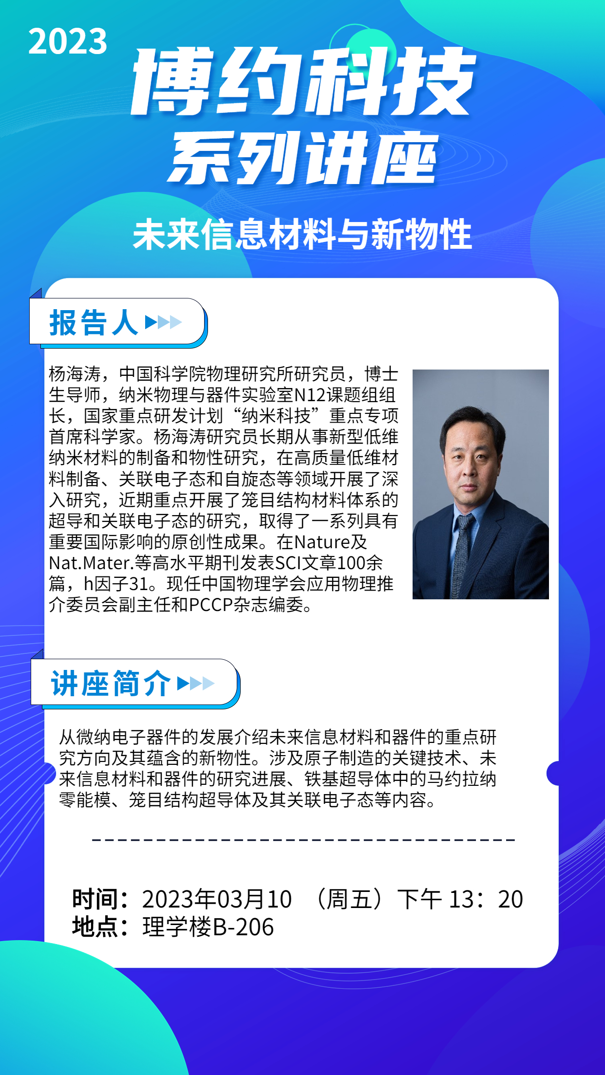 讲座预告|博约科技系列讲座-未来信息材料与新物性