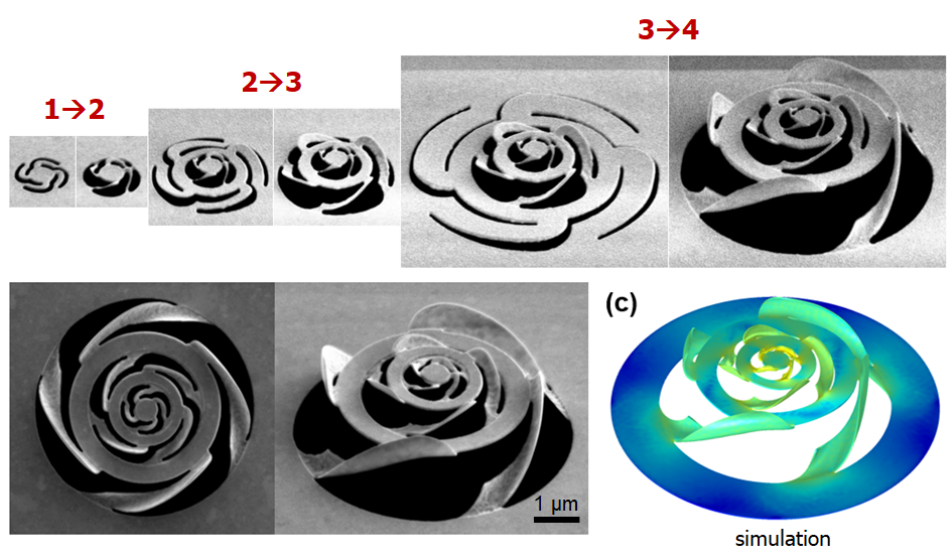 1.三维人工微纳结构制备及功能器件研究1)基于FIB、EBL等工艺的纳米剪纸三维微纳制备技术及光电器件