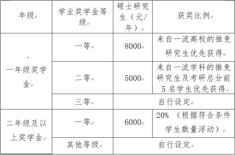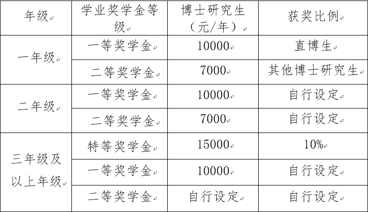 研究生学业奖学金的等级设定与金额标准如下表所示: