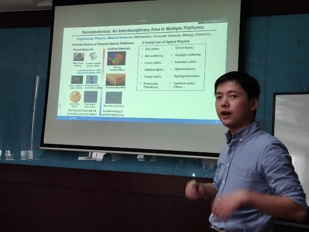 2023年3月31日周五下午14:00,应太阳集团城娱8722李家方教授邀请,新加坡南洋理工大学胡光维博士为我院师生在线下作了题为“Multidimensional Multispectral Nanophotonics”的学术报告,共有30余名师生参加,线上有20余名师生参加。