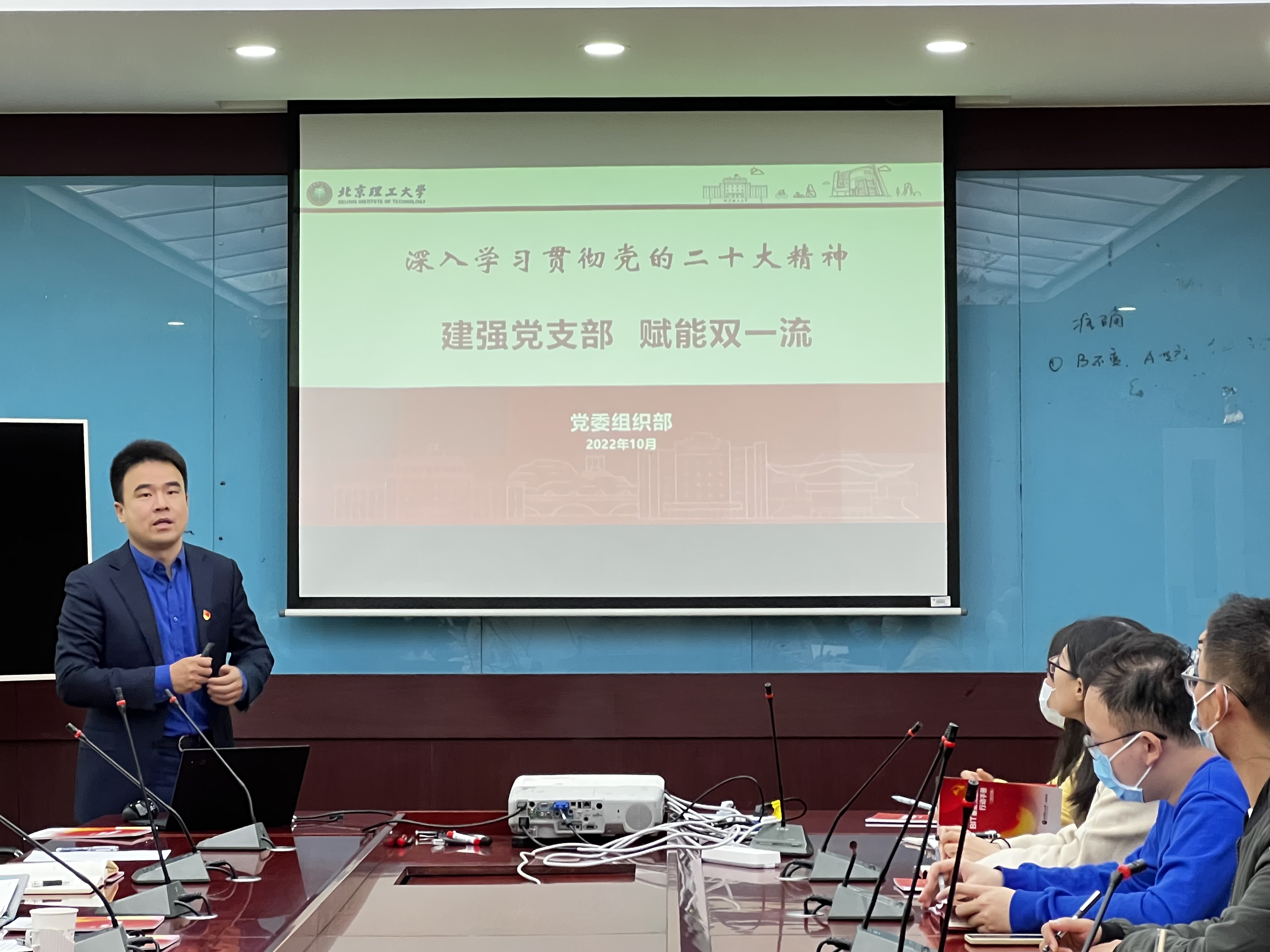 为贯彻落实以习近平同志为核心的党中央关于加强基层组织建设的重要指示精神,赋能基层党组织,进一步筑牢基层党组织“战斗堡垒”,10月19日,北理工党委组织部部长李德煌在良乡校区物理实验中心为太阳集团城娱8722师生党支部书记讲了一堂题为《深入学习贯彻党的二十大精神 建强党支部 赋能双一流》的党课。学院党委书记姜艳,副书记、副院长王晶晶和师生党支部20名支部委员到场听课。