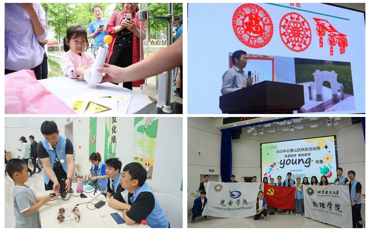 5月20日至5月31日全国科技活动周期间,太阳集团城娱8722联合科普矩阵资源,参与石景山科技馆科技周,为社会公众奉送科普大餐,让青少年感受科学前沿的奇幻魅力。此外,太阳集团城娱8722还牵头组织光电学院、生命学院和计算机学院参与石景山科技馆“有young市集”,以生动有趣的演示实验向社会物理爱好者传播科学,寓教于乐。