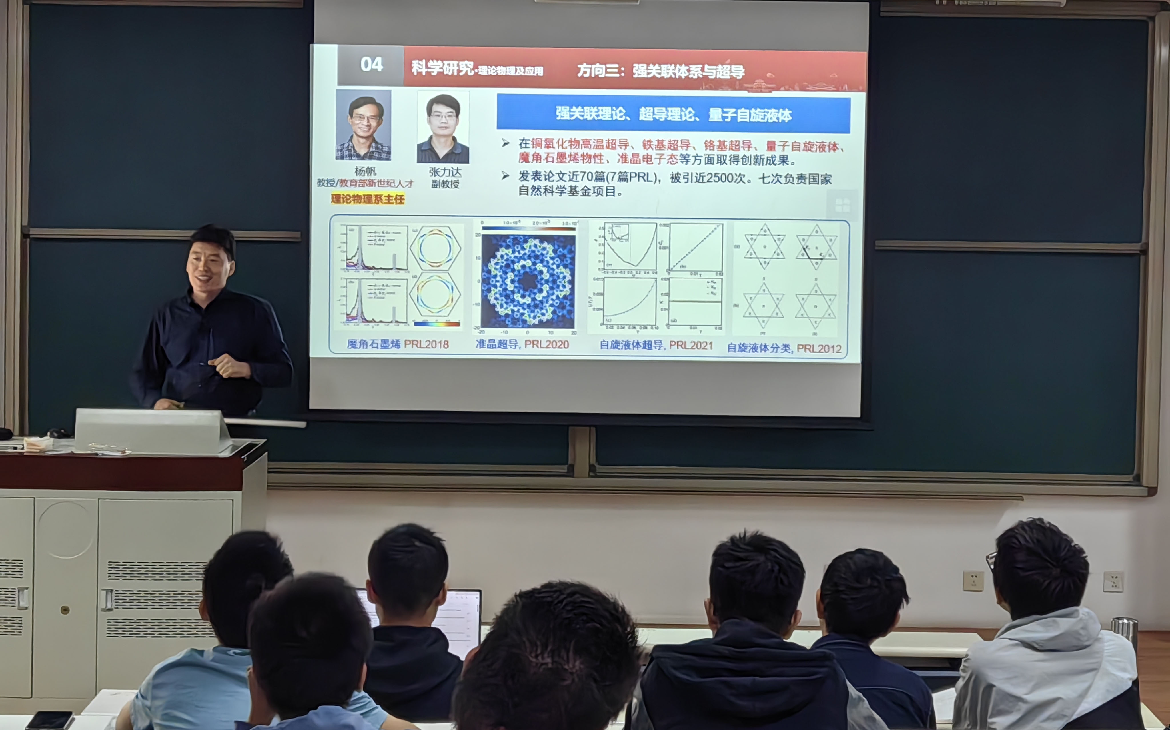 在专业课宣讲环节,学院尹璋琦、李军刚、孙林锋三位老师立足个人主要研究方向,以深入浅出的语言面向本科生进行了物理知识的专业科普,引导各位同学走进物理、热爱物理。