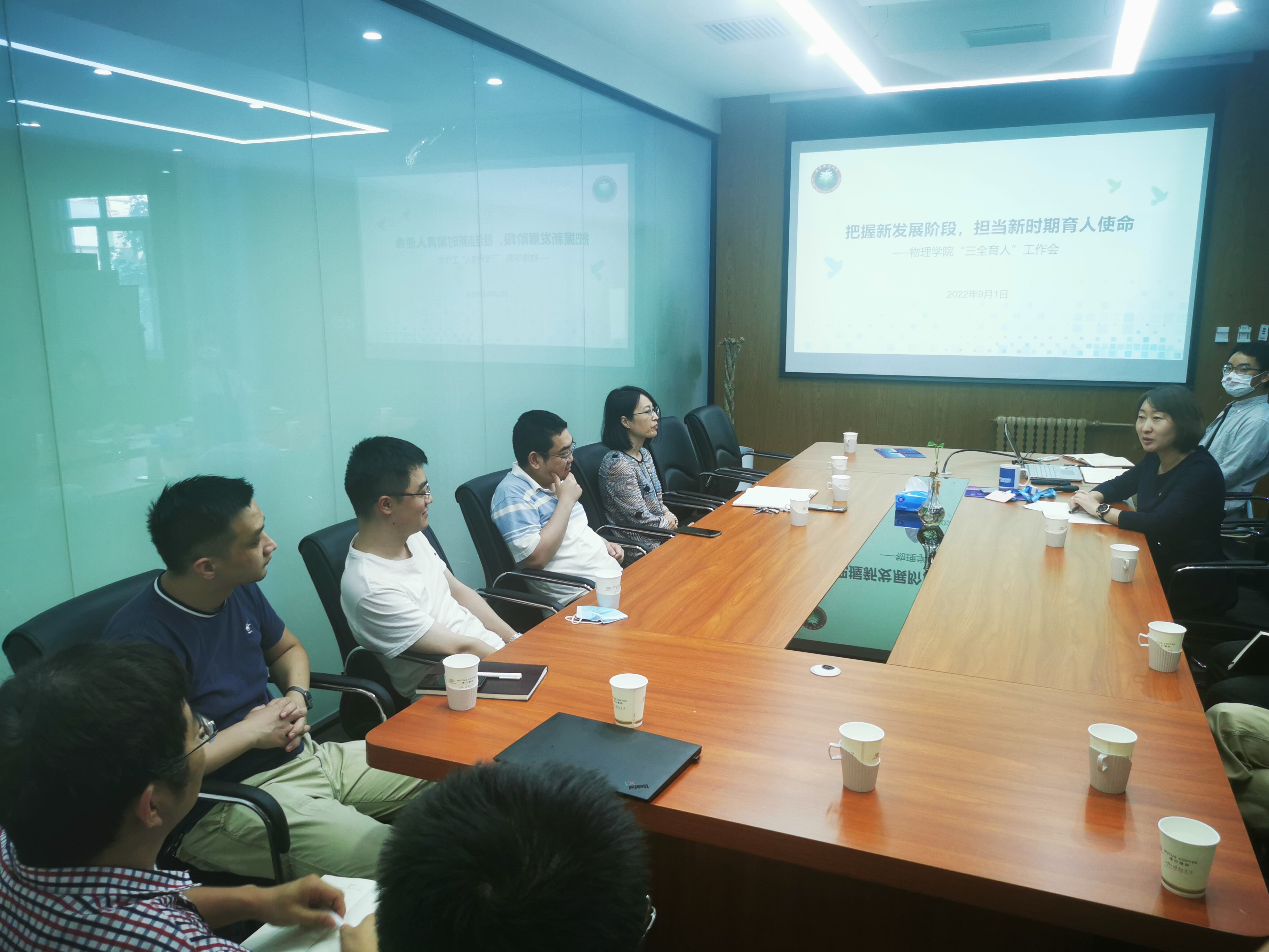 9月1日,太阳集团城娱8722在理学楼B203会议室召开2022-2023学年秋季学期育人工作会,学院党委书记姜艳,副书记王晶晶,副院长苏文勇、李家方,全体年级组长、新生班主任和辅导员参加了会议。