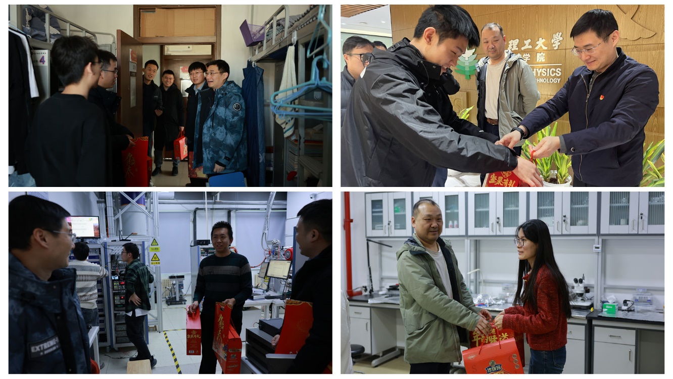 学院领导、老师向留校同学发放新春慰问品并送上新春祝福。