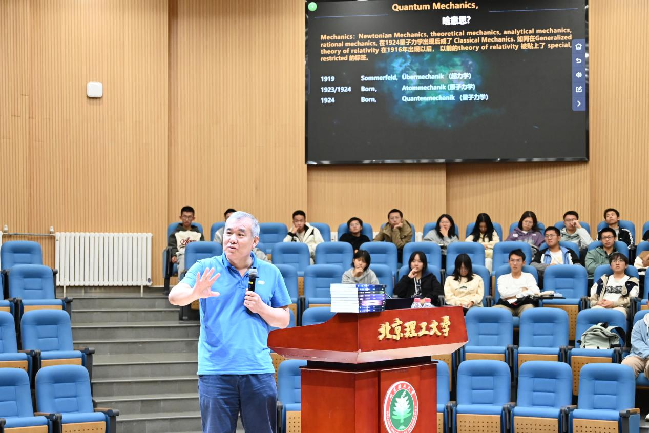 报告结束后,同学们积极提问,就自己目前所学的专业知识、个人发展、量子力学未来前沿动态等问题虚心求教,曹教授一一耐心解答并向提问同学送上有本人亲笔签名的最新著作。