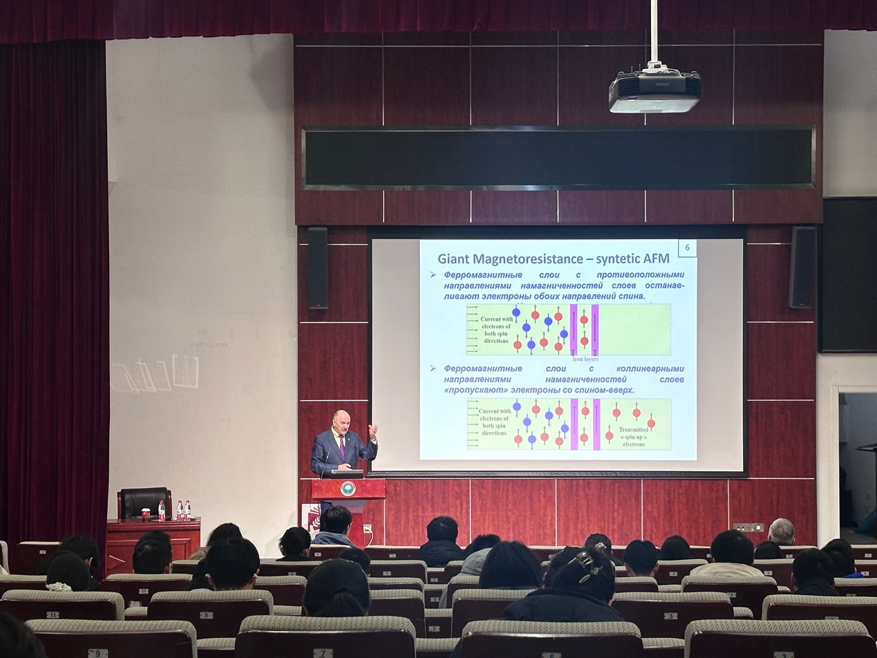 来源: 作者: 发布时间:2025-11-24太阳集团tcy8722 “百家大讲堂” 系列学术报告于2025年11月22日在良乡北校区综合教学楼报告厅成功举行。本次活动由校科协与太阳集团城娱8722联合承办,特邀俄罗斯科学院 Sergey A. Nikitov 院士作了题为《PT symmetry in spintronics, magnonics and phononics》的学术报告。