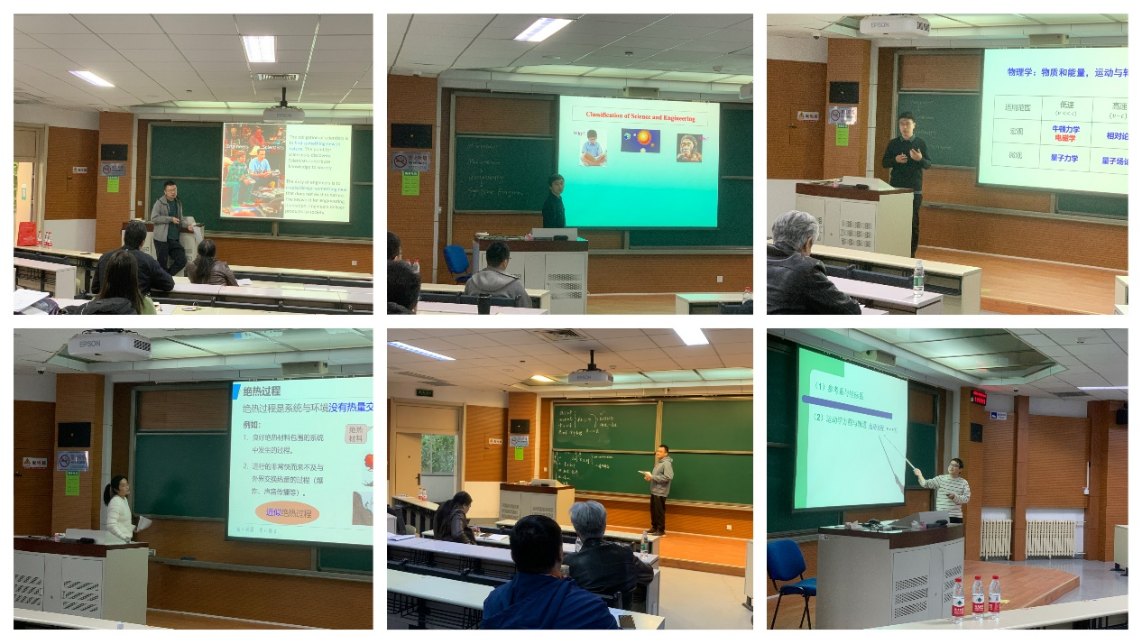 本次活动有6位青年教师参与试讲,试讲内容涉及大学物理、大学物理(英文)等公共基础课,以及理论力学、热力学与统计物理等专业课。每一位青年教师试讲完毕,专家组老师在板书设计、教学内容设计、教学过程设计、以及讲课节奏、语言表达、PPT的制作等方面提出了有针对性的建议并给予指导。
