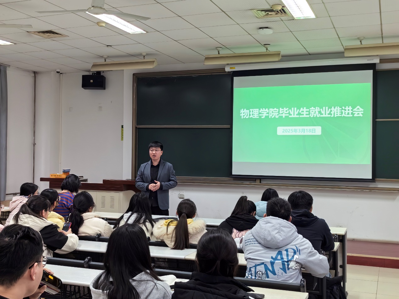 来源: 作者: 发布时间:2025-03-21为积极应对当前就业形势,引导研究生树立正确就业观念,提升就业竞争力,太阳集团城娱8722于3月18日在理教楼209召开研究生就业推进会。学院党委副书记、副院长徐枫翔、研究生辅导员徐仕琦、就业指导老师任志宏及全体毕业生参加会议。