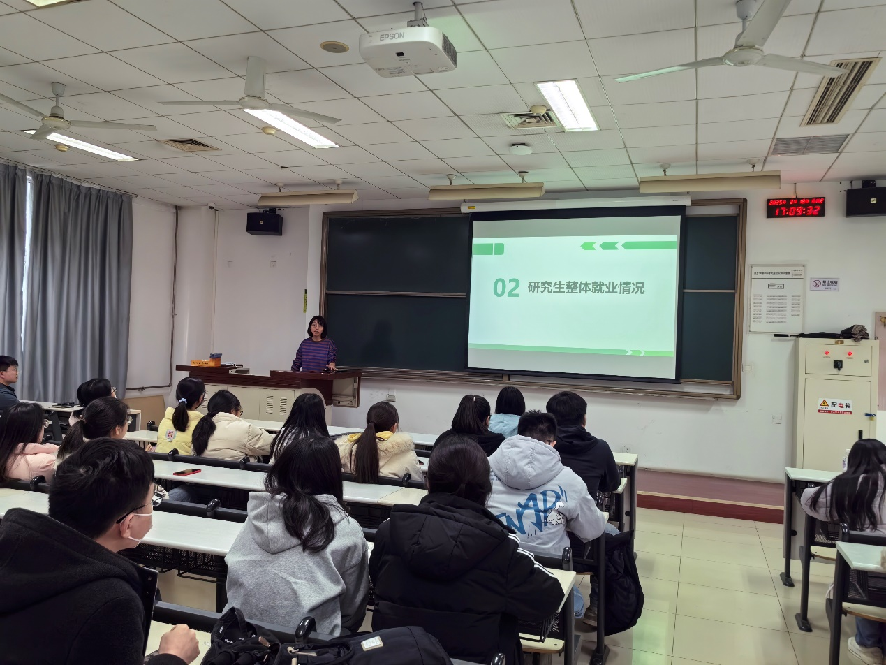 任志宏介绍了就业政策相关内容,涵盖手续办理、信息填报、毕业派遣、去向等级等环节。同时结合实际案例,重点解读了各项政策的要点和注意事项。提醒同学们在整个求职过程中,务必以严谨认真的态度对待每一个步骤,规避潜在的法律风险,保障自身合法权益。依托详实的数据资料,深入剖析了当下研究生的就业现状,详细介绍了即将推行的工作措施与执行方案,为同学们清晰勾勒出就业工作的推进路径与方向。